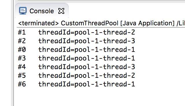 从这个例子,可以看出,虽然我们有7个任务,但是实际上,只有三个线程在运行。