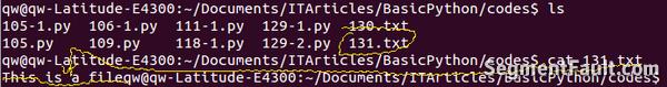 比如:在上一级目录中(~/Documents/ITArticles/BasicPython),加入我进入到那个目录中,运行交互模式,然后试图打开130.txt文件。