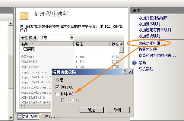 IIS7也类似于IIS6.0,选择站点对应的目录,data、uploads及静态html文件目录,双击功能试图面板中的“处理程序映射”(如图2)