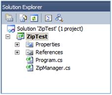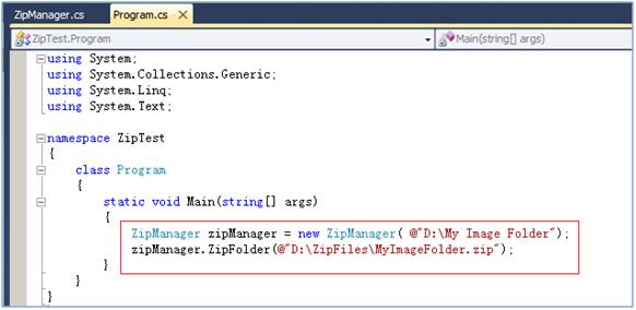 创建一个控制台项目,添加一个类ZipManager,用来实现我们想要的操作。