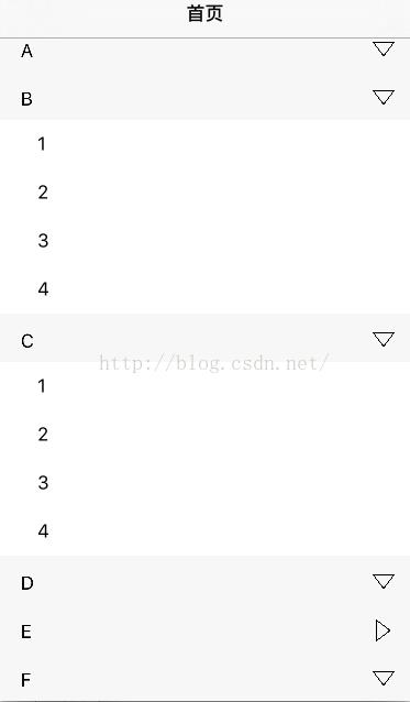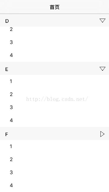 我们来具体的分析一下,首先考虑是复用的问题,当section要显示的时候,就会从复用池里面找到ID一样的section,然后找到了section,拿过来直接用,这里仅仅把显示的内容修改了一下,并没有判断section里面图标是展开状态还是为展开状态。好了,到这里我们分析出问题的所在,那么,我们我们应该在修改程序呢?当section要显示的时候,我们要判断一下section展开图标的状态,然后将它设置成正确的图片。那么我们只要在GetViewForHeader里面添加如下的代码