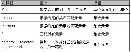 基本选择器是 jQuery 中最常用的选择器, 也是最简单的选择器, 它通过元素 id, class 和标签名来查找 DOM 元素(在网页中 id 只能使用一次, class 允许重复使用).