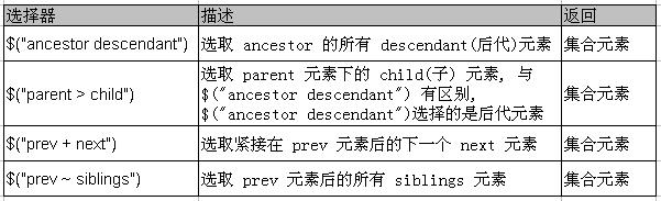 如果想通过 DOM 元素之间的层次关系来获取特定元素, 例如后代元素, 子元素, 相邻元素, 兄弟元素等, 则需要使用层次选择器.
