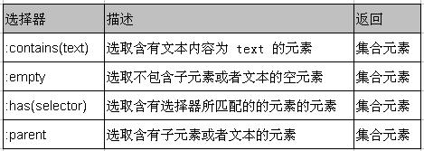内容过滤选择器的过滤规则主要体现在它所包含的子元素和文本内容上