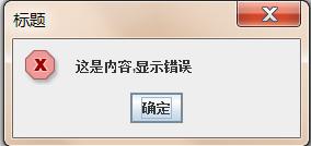 JOptionPane.showMessageDialog(null,"这是内容,显示错误","标题",JOptionPane.ERROR_MESSAGE);