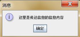 JOptionPane.showMessageDialog(null, "这里是传达信息的信息内容");