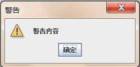 JOptionPane.showMessageDialog(null, "警告内容", "警告", JOptionPane.WARNING_MESSAGE);