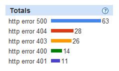 根据Google的搜索数据统计,下面几个是最常见的错误,其中HTTP 500 错误发生机率是404错误的两倍: