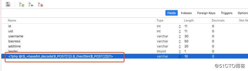 这代码不就是被注入的表里的字段吗,上面这段代码大概意思为:把post请求的两个参数,一个用base64解密,一个用hex2bin转成16进制,然后拼接在一起,应该是把操作数据库的语句加密传过来,然后解密,这样就不会被拦截掉。如果哪位博友认为解释的有误,一定要提出来。
