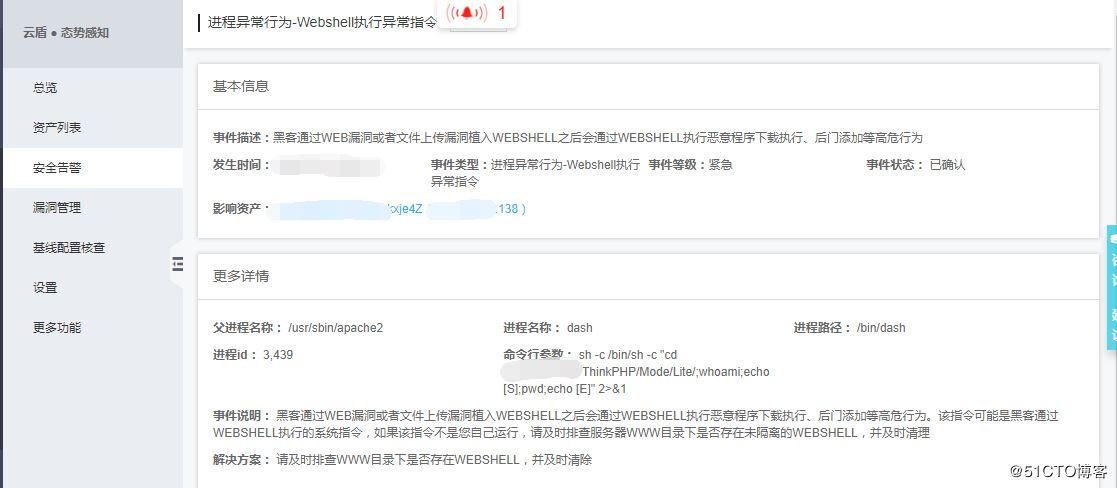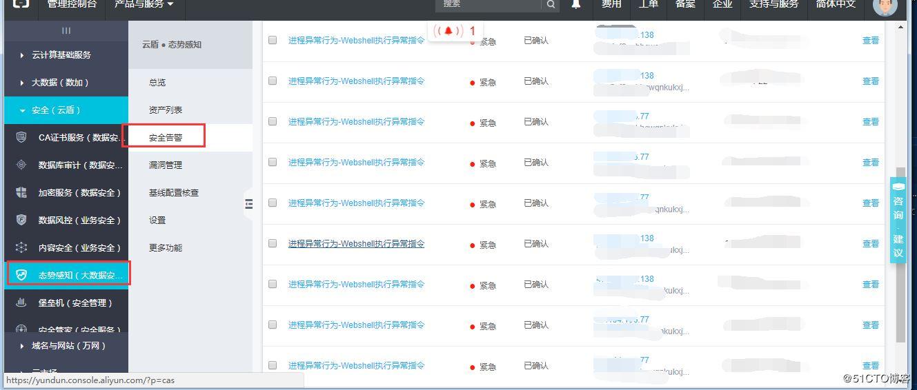 此时,php的项目源码分布在好几台服务器上,如果靠传统方式去排查,挨个检查这些服务器的目录,各种能用的命令都用上了,是不是也挺费劲费时的,还不知道要查到啥时候。这个时候,阿里有项服务起到关键的作用了:“态势感知”,这个需要升级为企业版本(费用不高,我们公司开通了一年,费用6000多块)。这就是用阿里的好处(不是打广告),确实让你省心。
