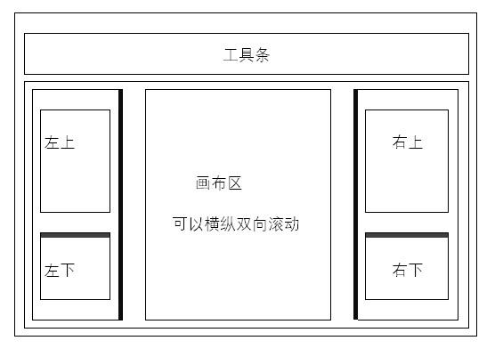 细实线描述的是各个DIV之间的嵌套关系,粗黑线是独立的DIV,我称它们为把手(HADLE),主要用来接受鼠标拖动事件,以完成拖动操作。handle非为两种,横向x-handle,纵向y-handle,css中定义x-handle宽度为3px,高度为100%,y-handle高度为3px,宽度为100%,鼠标光标也相应设置一下: