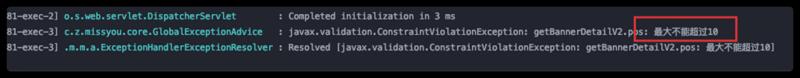 访问接口http://localhost:8081/v3/banner?id=12&pos=33后,看到我们控制台的输出提示输入不能超过10,这里的这个message不是我写的哈,这是java国际化后的效果能够根据你所在地区决定显示什么语言。