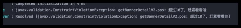 可以看到控制台输出了我们自定义的内容。这里有一点要注意,要想使得校验生效,比如在Controller上方打上@Validated注解,至于为什么我们后面分解。