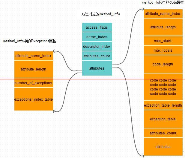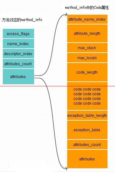 attributes_count 表示当前Code 属性中存在的其他属性的个数。 现在我们知道, class中的属性, 不仅会出现在顶层的class中, 会存在field_info中, 会存在method_info中, 甚至还会出现在属性中。