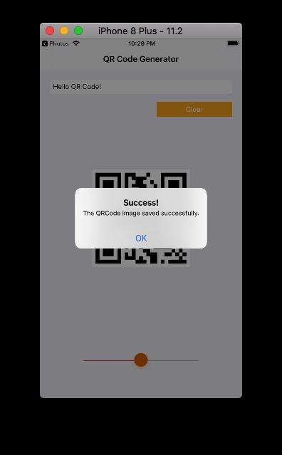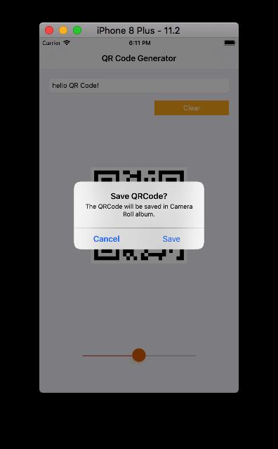 UIAlertController *alertController = [UIAlertController alertControllerWithTitle:@"Save QRCode?" message:@"The QRCode will be saved in Camera Roll album." preferredStyle:UIAlertControllerStyleAlert];