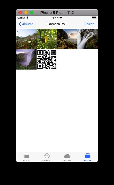 问题修复完成!再次运行,点击保存按钮,打开相册应用,你会看到刚才保存的二维码: