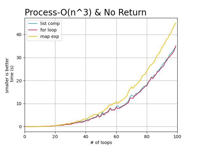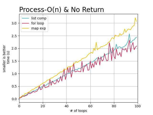 def list_comp(): [process1(i, "list") for i in range(length)] # [process2(i, "list") for i in range(length)] # [process3(i, "list") for i in range(length)] def for_loop(): for i in range(length): process1(i, "for") # process2(i, "for") # process3(i, "for") def map_exp(): list(map(lambda v: process1(v, "map"), range(length))) # list(map(lambda v: process2(v, "map"), range(length))) # list(map(lambda v: process3(v, "map"), range(length)))