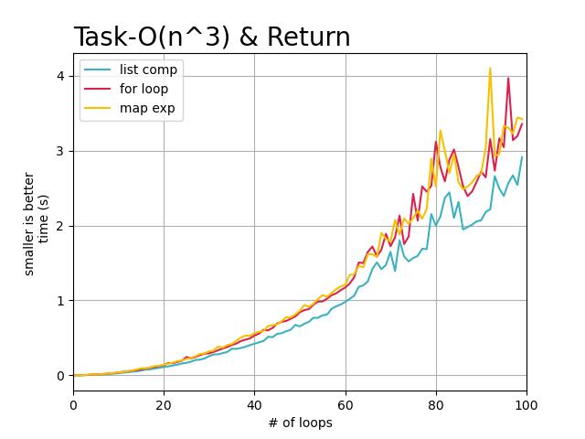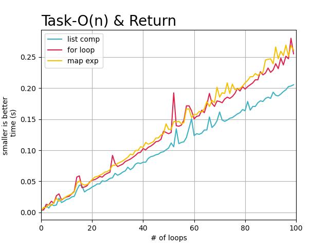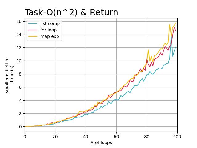 def list_comp(): # return [task1(i, "list") for i in range(length)] return [task2(i, "list") for i in range(length)] # return [task3(i, "list") for i in range(length)] def for_loop(): res = list() for i in range(length): # res.append(task1(i, "for")) res.append(task2(i, "for")) # res.append(task3(i, "for")) return res def map_exp(): # return list(map(lambda v: task1(v, "map"), range(length))) return list(map(lambda v: task2(v, "map"), range(length))) # return list(map(lambda v: task3(v, "map"), range(length)))