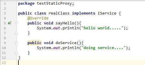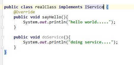 为了说明问题,我们定义了一个 IService 接口,并让我们的真实类继承并实现该接口,这样我们的真实类中就有两个方法了。