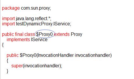 接着,你会注意到这个代理类继承 Proxy 类和我们指定的接口 IService(之前如果指定多个接口,这里就会继承多个接口)。