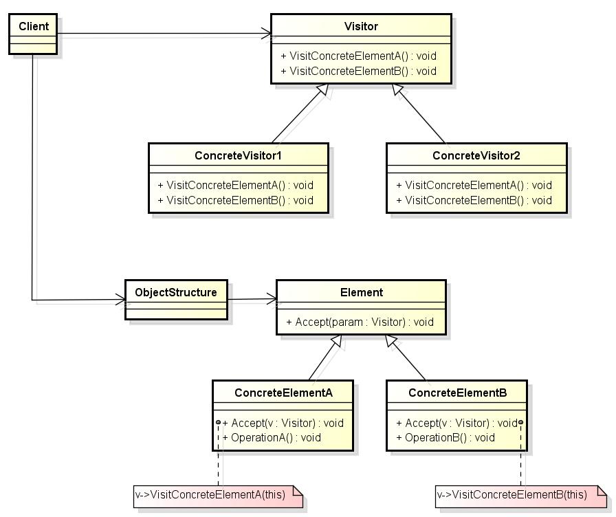 ObjectStructure(对象结构):能够枚举它的元素,同时提供一个高层的接口以允许该访问者访问它的元素。