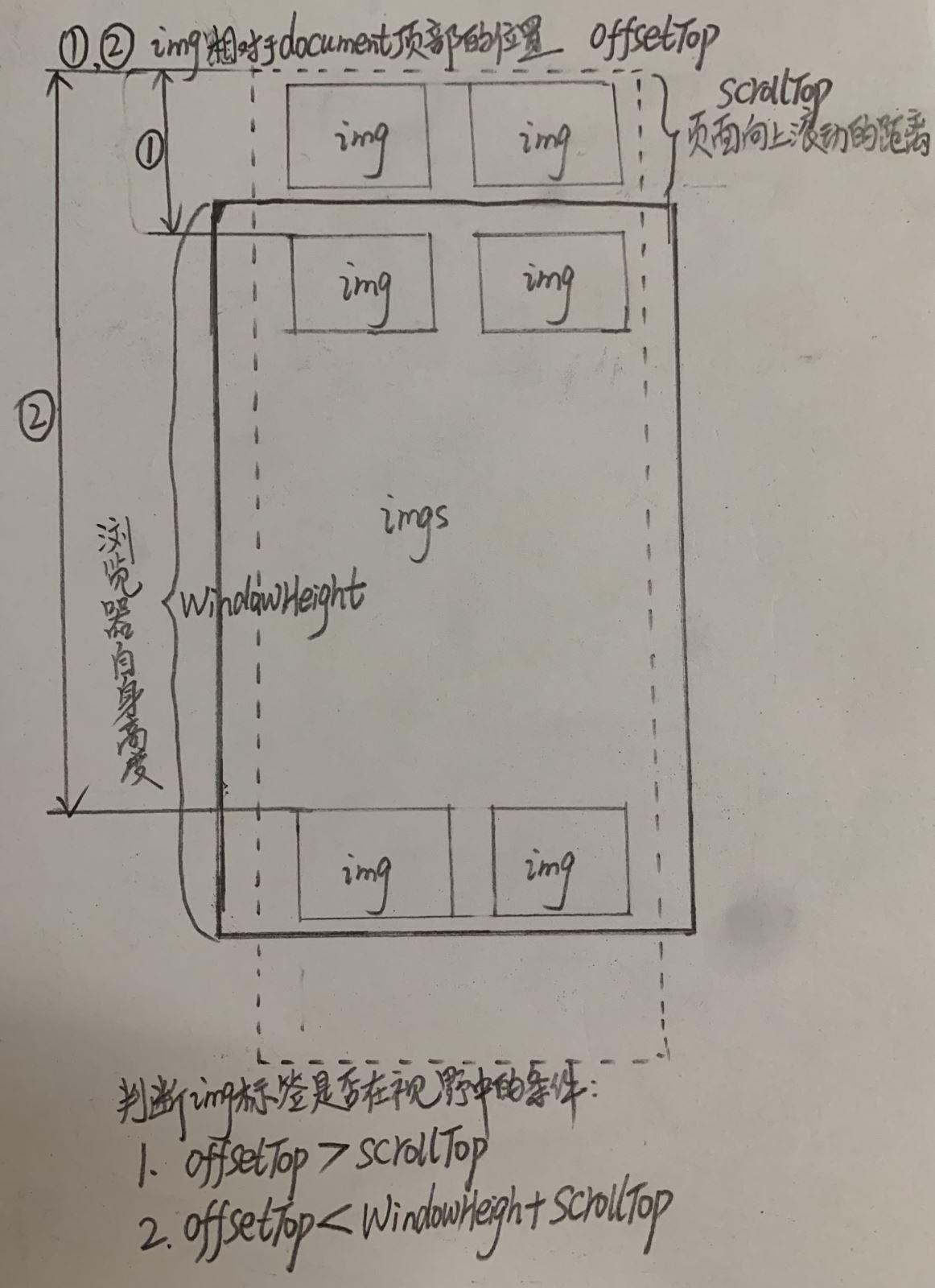 判断图片元素是否处于浏览器视野中的示意图(手绘):