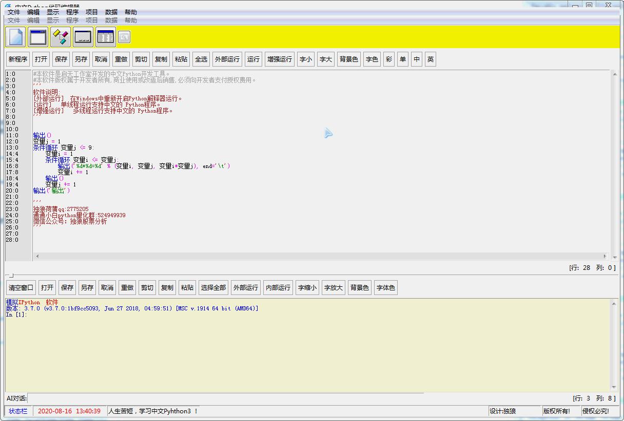 上面的Python代码编辑器模块,我们已经用在商业化的小白量化软件中了.