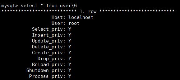 [root@test-1 ~]# mysql -utom -p mysql> show databases; #tom用户我们之前没有赋予权限,但这里可以查看 mysql> show tables; mysql> select * from user\G