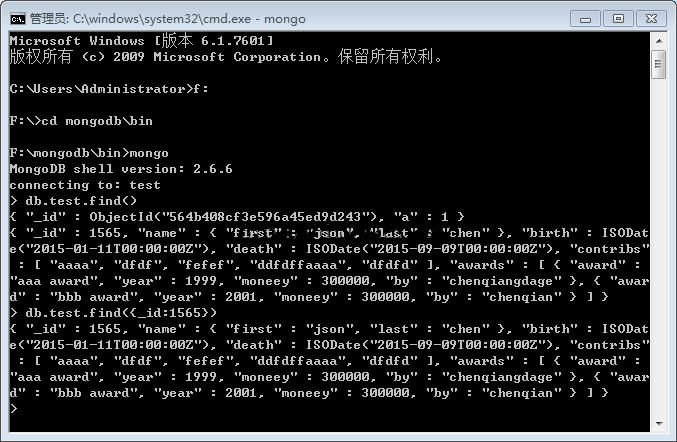 >db.test.find({name:{first:'aaa',last:'bbb'}}).