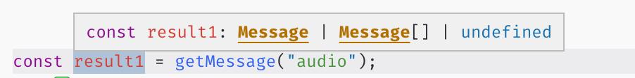 /** ✅*/ function getMessage(type: MessageType, count?: number): Message[]; function getMessage(id: number): Message | undefined; /** 🚨*/ function getMessage(id: number): Message | undefined; function getMessage(type: MessageType, count?: number): Message[];