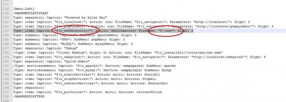 Type: item; Caption: "www directory"; Action: shellexecute; FileName: "F:\www"; Glyph: 2wampmanager.tpl中:Type: item; Caption: "${w_wwwDirectory}"; Action: shellexecute; FileName: "F:\www"; Glyph: 2