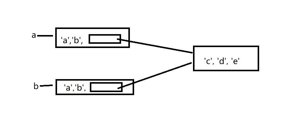 a = ['a', 'b', 'c'] b = a a[1] = 'd' print(b) b[2] = 'e' print(a) ['a', 'd', 'c'] ['a', 'd', 'e']