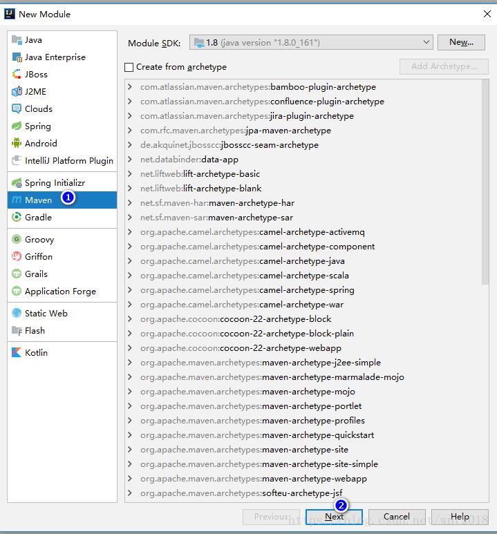 2、依次选择maven,这里不要点击“create from archetype”点击next