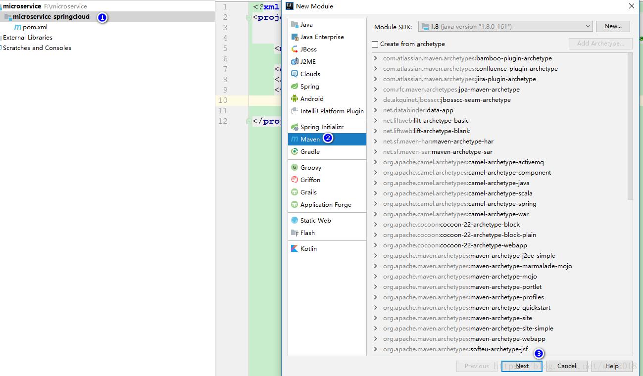 6、创建一个子模块项目,在父工程上右键点击new Module,依次点击maven,同样不要勾选“create from archetype”