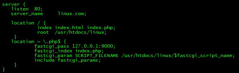 fastcgi_param SCRIPT_FILENAME /usr/htdocs/linux/$fastcgi_script_name; //当前虚拟主机对应的目录