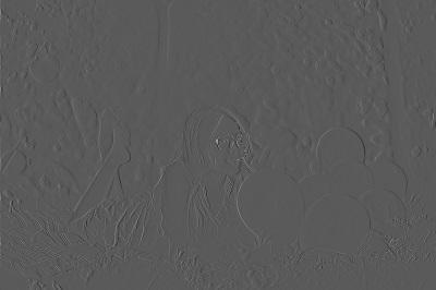 #因此这样的算法 处理之后,只有颜色的边沿区域,也就是相邻颜色差异较大的部分的结果才会比较明显,而其他平滑区域则值都接近128左右,