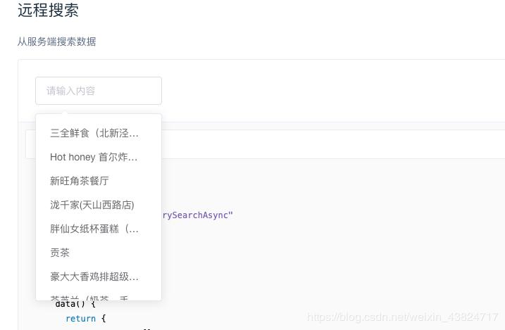 在elementui Input输入框中可以找到远程搜索组件,获取服务端的数据