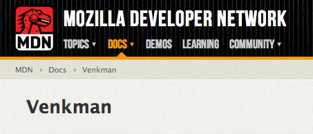 Venkman是Mozilla的JavaScript调试器名称。它旨在为以Mozilla为基础的浏览器(Firefox, Netscape 7.x/9.x and SeaMonkey)提供一个强大的JavaScript调试环境。