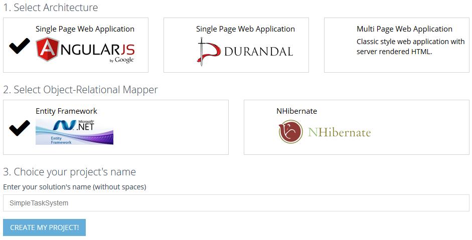 它不是一个一体化的框架。相反,它使用流行的工具/库来完成特定的任务(例如用EF做ORM,用Log4Net做日志记录,使得Castle Windsor作为赖注入容器, AngularJs 用于SPA 框架)。
