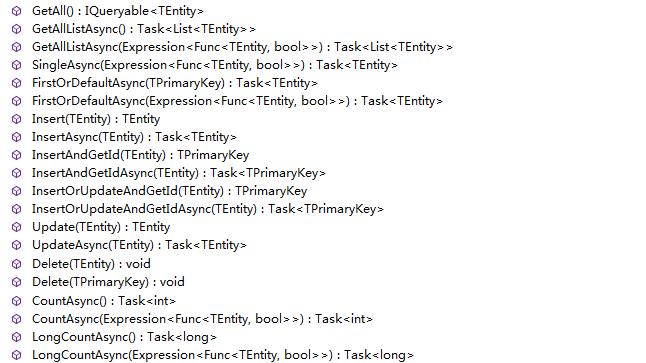 所以ITaskRepository默认就有了上面那些方法。可以再加上它独有的方法GetAllWithPeople(...)。