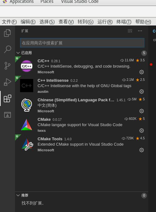 必要的插件c/c++ 0.28.1 cmake 0.0.17 cmake tools 1.4 (这几个插件的版本可能会不同,以扩展搜索到的最新的为准)