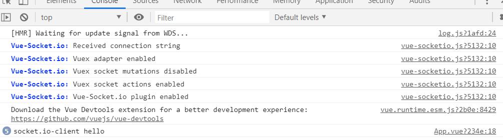 没问题,数据传过来了,但vue-socket.io为啥不行,不管了,先向服务端发送一条信息看能不能收到: