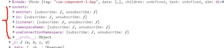 打印一下this发现因为引入vue-socket.io的原因,this上面挂了一个sockets属性: