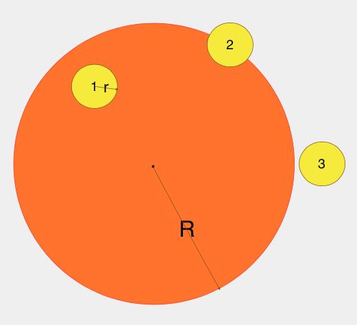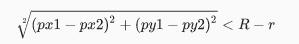大圆中心坐标为(px1、py1),半径为R; 随机圆中心坐标为(px2、py2),半径为r
