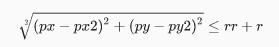 if (sqrt(pow(circle.center.x - randomCPX, 2) + pow(circle.center.y - randomCPY, 2)) <= (circle.radius + r)) {