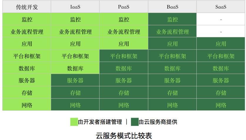 帮助大家简单快速分辨清楚 IaaS、PaaS、BaaS和SaaS。