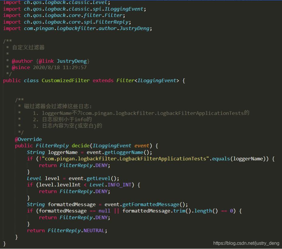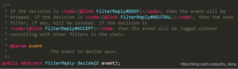 对于Filter而言,需不需要记录日志,取决于ch.qos.logback.core.filter.Filter#decide方法的返回:
