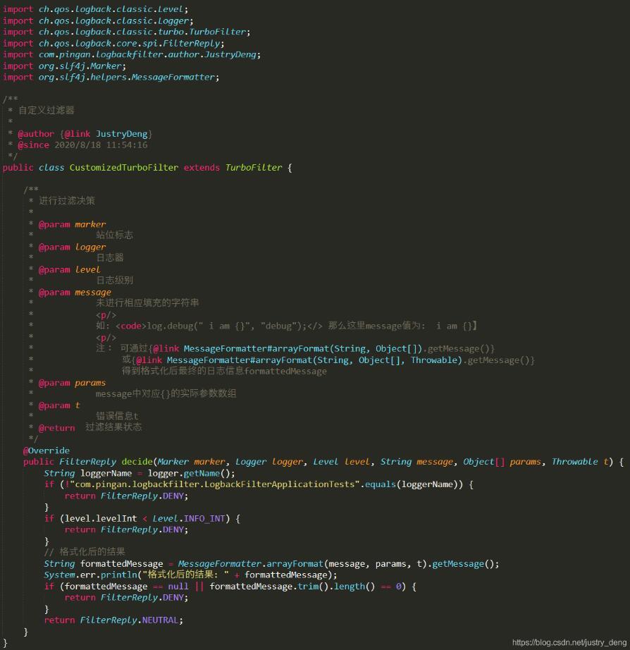 对于TurboFilter而言,需不需要记录日志,取决于ch.qos.logback.classic.turbo.TurboFilter#decide方法的返回: