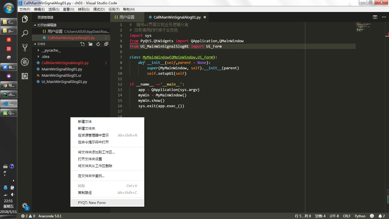 除了使用pycharm外,还可使用vscode来操作pyqt,方法如下: