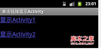 本例的显示效果如图5.5所示。单击屏幕上的两个链接后,就会分别显示Activity1和Activity2的界面。
